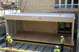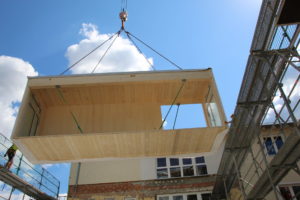 Montage der Holzmodule in Bayreuth für die Grundschule St. Georgen