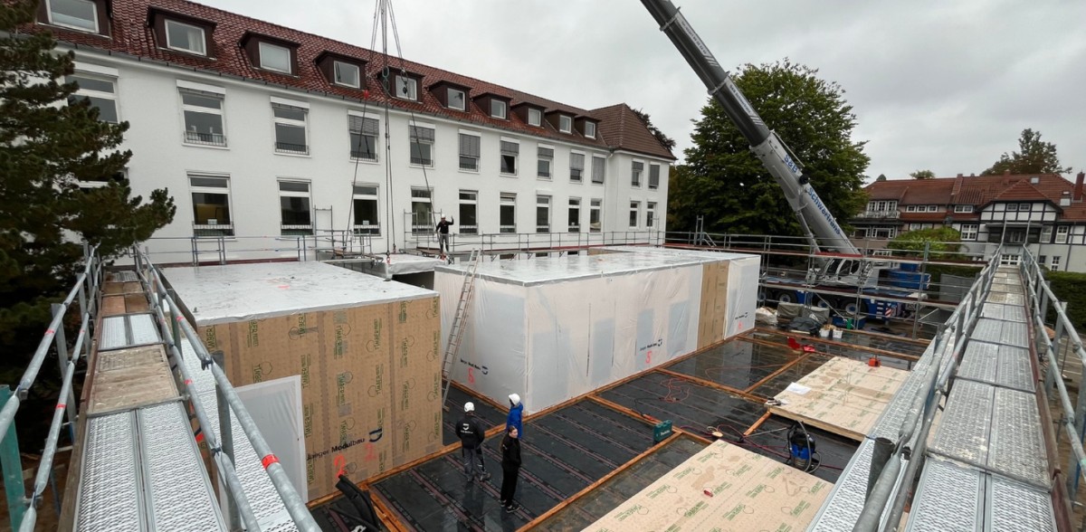 Ein spannendes Projekt nimmt Form an: Für das AKH Celle entsteht eine neue Radiologie-Einheit als Anbau an die Klinik für Kardiologie (Station U0) – nachhaltig geplant in moderner Holzmodulbauweise.